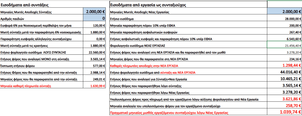 Παράδειγμα 2: Σύνταξη 2.000 € και μισθός 2.000 €